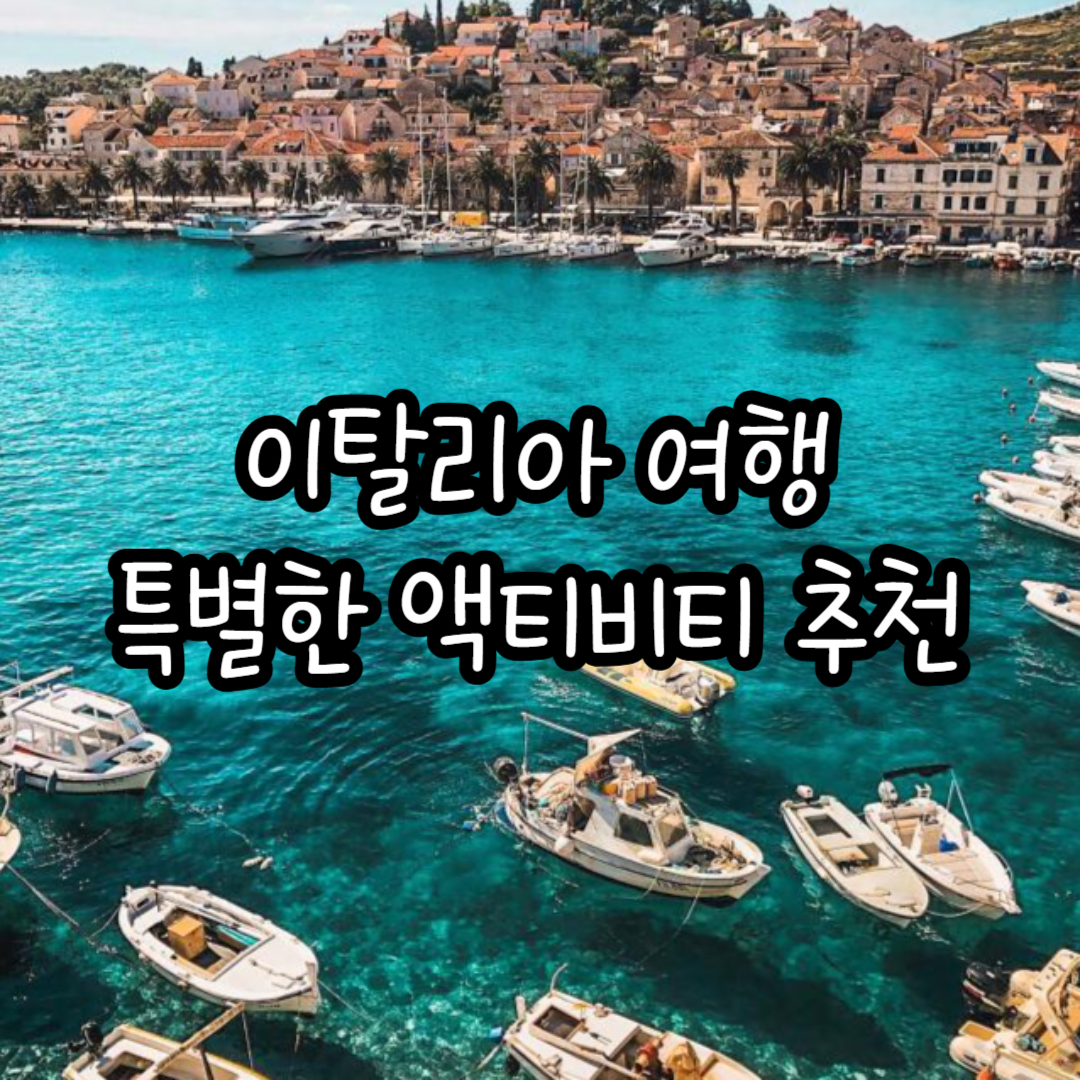 이탈리아는 단순한 관광지만이 아니라, 여행자들이 직접 체험할 수 있는 다양한 액티비티가 가득한 나라입니다. 트러플 사냥, 와이너리 투어, 요리 클래스, 곤돌라 투어, 하이킹 등 당신의 여행을 더욱 특별하게 만들어 줄 활동들을 꼭 경험해 보세요.